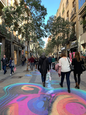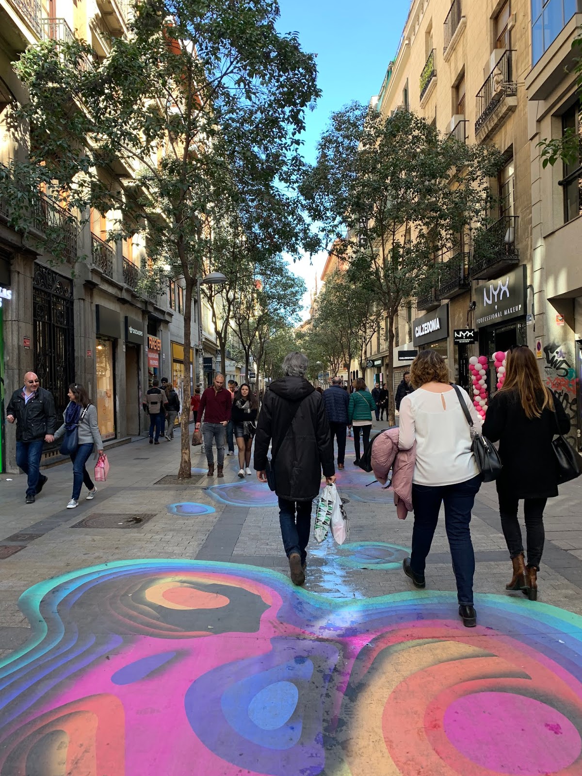 Gran Vía para ir a la calle Fuencarral y apreciar el arte en la suelo por la semana